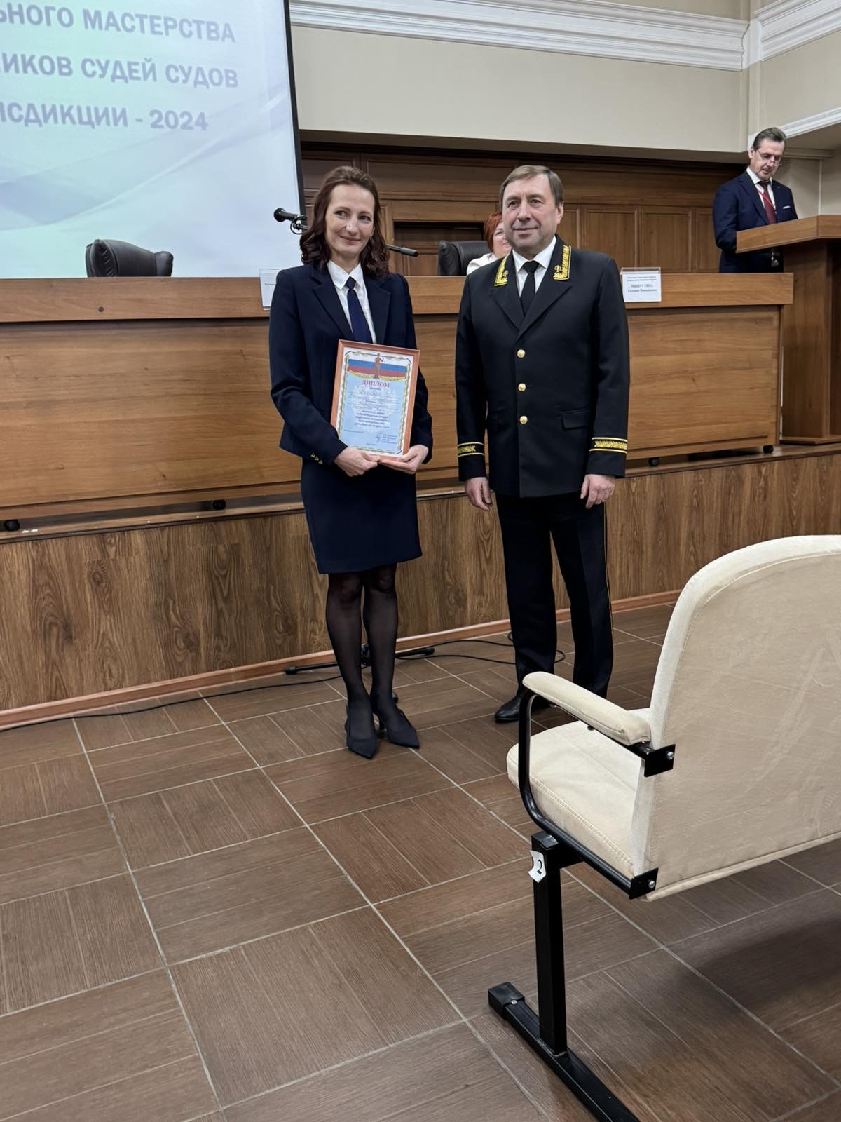 Сегодня в помещении Верховного суда Республики Хакасия состоялся республиканский конкурс профессионального мастерства среди помощников судей судов общей юрисдикции - 2024. Данный конкурс был организован советом судей Республики Хакасия и Управлением Судебного департамента в Республики Хакасия Черногорский городской суд представляла помощник судьи Оскирко Е.О., которая заняла 1 место. Коллектив суда поздравляет Евгению Олеговну с заслуженной победой. А мы в этом и не сомневались! Пресс-служба суда |